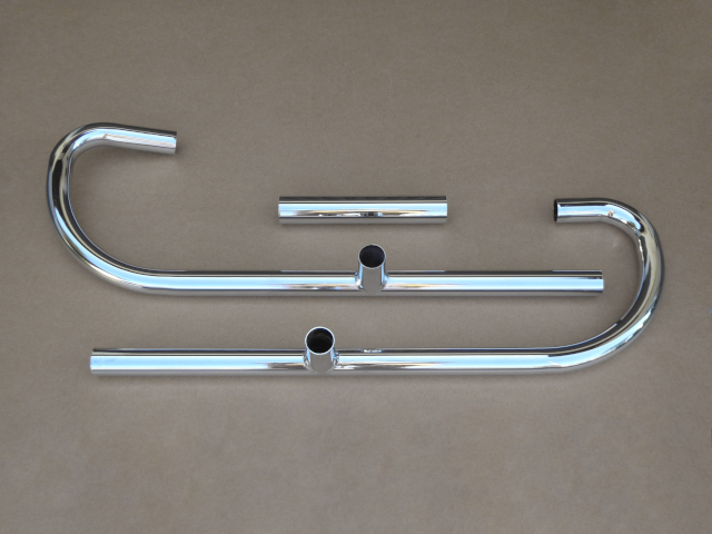 Set of exhaust pipes with the balance pipe, chrome-plated.